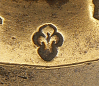 A la marque au "poinçon emblématique" s'ajoute, chaque année, une marque faite au "poinçon à lettre annuelle" attestant la vérification périodique obligatoire. On distingue à droite, sur le poids de 500 g que nous avons pris pour exemple, la marque du fabricant, ici, un T couronné. |