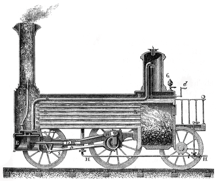 Une des applications les plus importantes de la machine à vapeur : la locomotive des chemins de fer. |