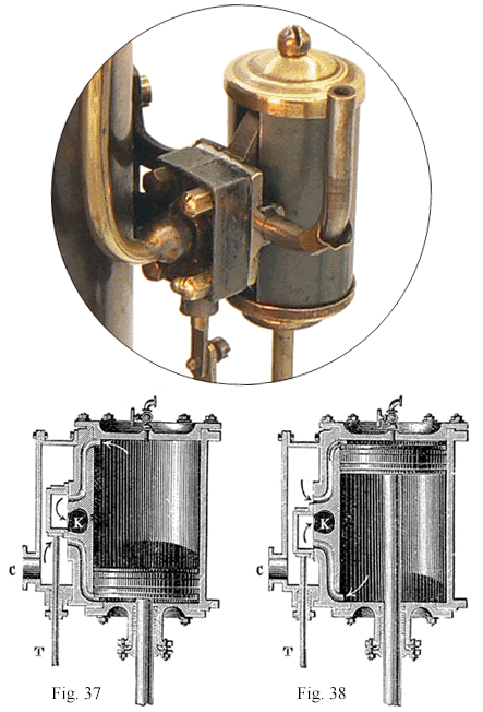 Près du bouchon de remplissage de la chaudière, le moteur est muni d'un sifflet commandé par une petite manette en bois, de 22 mm de longueur. |