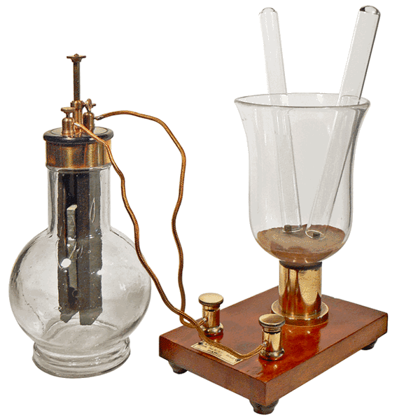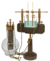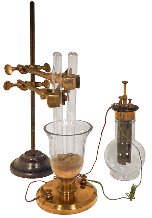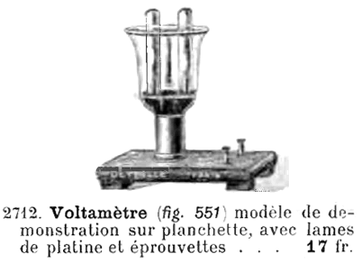 Voltamètre Deyrolle, alimenté par une pile Grenet |