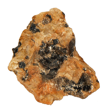 Inclusions d'oxyde de fer noir (Fe3 O4) dans une roche.