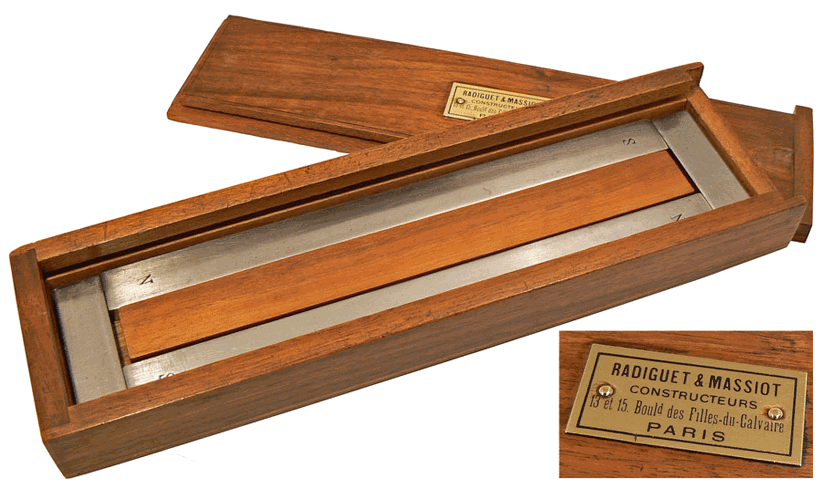 Les barreaux aimantés de 20 cm de longueur, dans leur coffret de rangement, préservés par les armures ou contacts en fer doux.