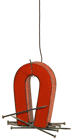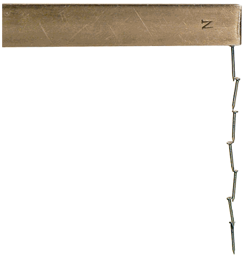 De la même façon, chaque petite pointe de fer doux devient un aimant et reste aimant tant que dure l'influence, c'est à dire tant que la pointe du haut demeure en contact avec le
