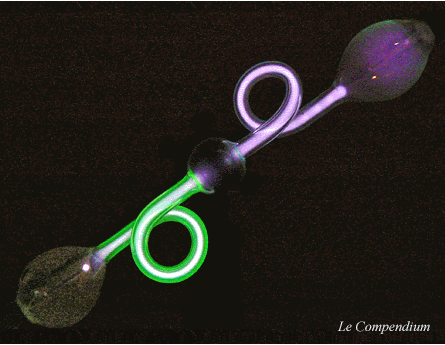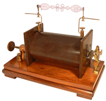 Les vignettes qui suivent mènent aux pages du Compendium relatives à un autre modèle de tourne-tube de Geissler, aux tubes de Geissler et à la bobine de Ruhmkorff. Il suffit de cliquer sur une vignette pour entrer directement sur la page qui lui correspond. |