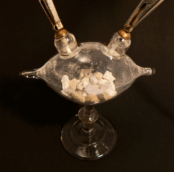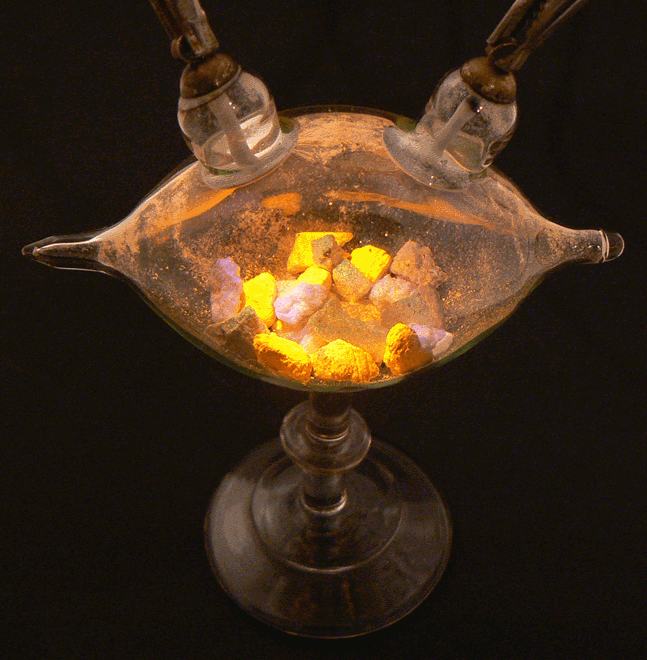 L'ampoule de forme ovoïdale contient des fragments de substances fluorescentes, par exemple les sels de baryum, de calcium, de zinc, de cadmium et de strontium, ou encore le rubis ou le diamant. Deux électrodes plates reliées à la bobine de Ruhmkorff permettent de provoquer une décharge électrique dans un vide beaucoup plus poussé que celui des tubes de Geissler. |