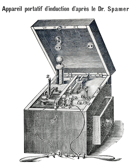 Appareil portatif d'induction d'après le Dr SPAMER - Dimensions du coffret 13,2 x 12,8 x 12,2 cm - Allemagne, vers 1900 |