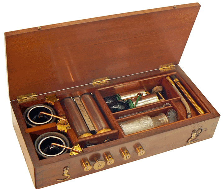 Posés sur le coffret, les différents excitateurs et leurs manches isolants, en bois laqué. | |||||||||||||||||||||||||||||||||||||||||||||||||||||||||||||||||||||||||||||||||||||||||||||||||||||||||||||||||||||||||||||||||||||||||||||||||||||||||||||||||||||||||||||||||||||||||||||||||||||