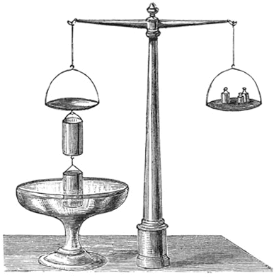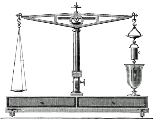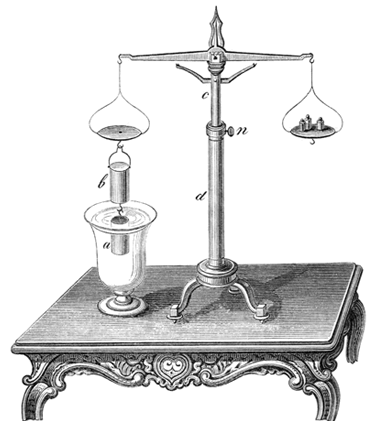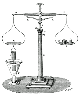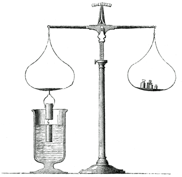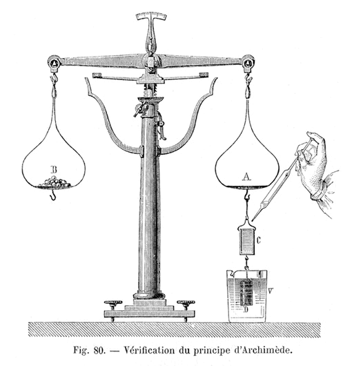 La représentation de la balance hydrostatique utilisée pour cette vérification dans d'autres ouvrages de la deuxième moitié du XIXe siècle : |