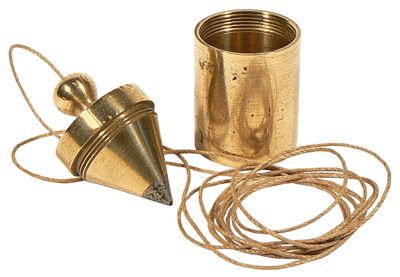 Fil à plomb conique en laiton et acier avec son cylindre de rangement |
