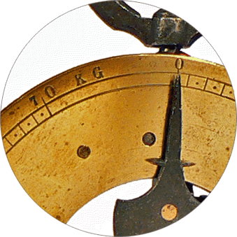 Dynamomètre à cadran circulaire - Hauteur totale 24 cm ; diamètre du cadran 12,5 cm - Vers 1900 |