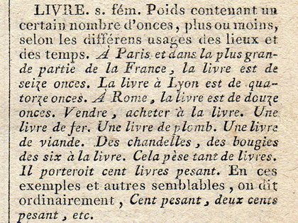 Auparavant, la valeur fluctuait ainsi que l'indique le DICTIONNAIRE DE L'ACADÉMIE FRANÇOISE de l'an VI de la République. (1798) : |