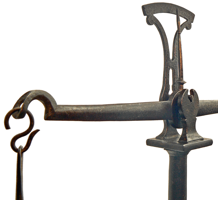 La suspension de la coupelle par une tige courbe terminée en fourche facilite sa manipulation. On peut la soustraire facilement de la balance pour vider son contenu, les 2 onces - soit 62,5 grammes - de tabac, dans une pochette ou tout autre récipient. |