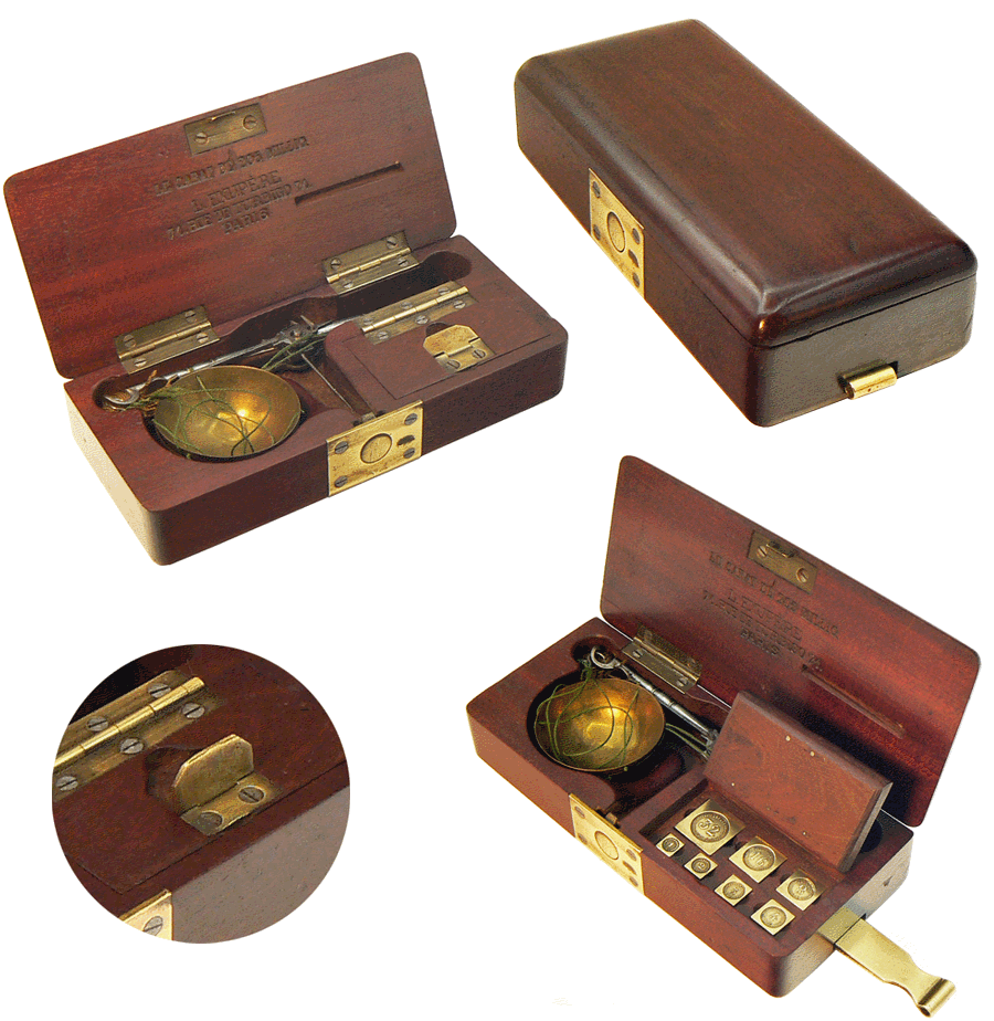 Balance-Carat de poche et sa boîte en acajou de 12,5 x 5,5 x 3 cm - L. EXUPERE - Entre 1875 et 1900 |