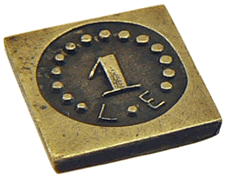 Notre carat mesure 5 mm de côté. Il porte, comme les autres poids de la boîte, les initiales de L. Exupère. |