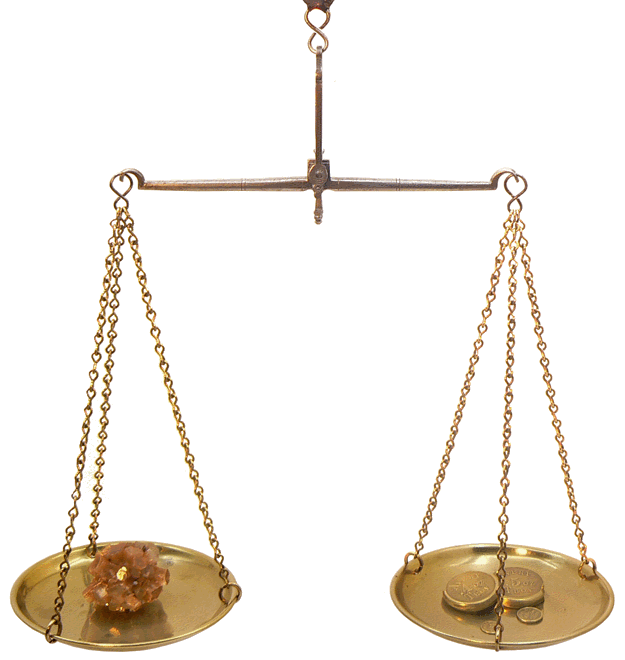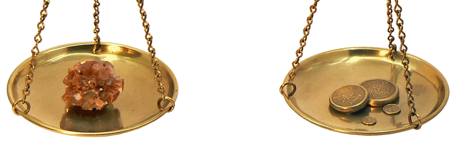 En l'absence de lingot d'or fin ou d'un diamant de bonne taille, nous avons pesé une jolie aragonite en utilisant la série de divisions de l'once troy : |