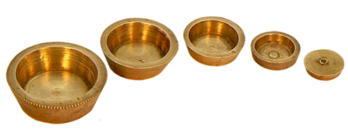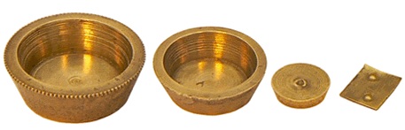 La dotation en poids comprend principalement la pile à godets de 1 once, composée de quatre godets de 4, 2, 1 et 1/2 gros et d'une pastille centrale également de 1/2 gros. |