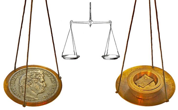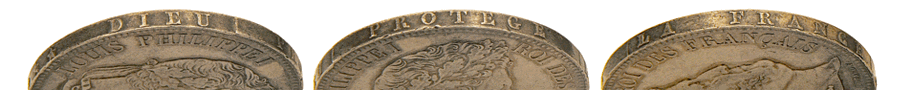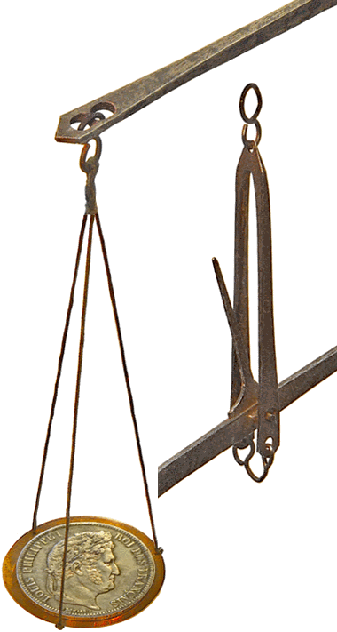 Si on se réfère à la table des monnaies, on note, dans la deuxième colonne de la table, que la Pièce de 5 frs de France, doit peser 6 ½ gros et 6 grains. En près de 200 ans, notre pièce aurait donc perdu, sans doute par usure, plus de 200 mg. Cette pièce en argent à l'effigie de LOUIS PHILIPPE a été fabriquée entre 1831 et 1848, c'est-à-dire vers la fin de la période d'installation du système métrique décimale. En effet, si le système métrique date de 1790, c'est la loi de 1837 qui, après une longue période transitoire pendant laquelle anciennes et nouvelles mesures coexistaient, a ordonné son utilisation obligatoire à partir du 1 janvier 1840. Le poids de notre pièce de Louis Philippe de 1838 avait, peut-être, déjà été révisé par rapport aux précédents spécimens, les 6 ½ gros et 6 grains (correspondant à 25,17 grammes) ayant laissé la place à 25 grammes "tout ronds". Ce qui veut dire que la perte de poids de notre pièce serait alors plus faible... |