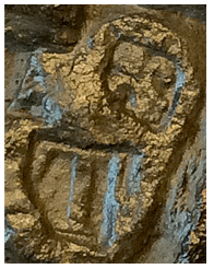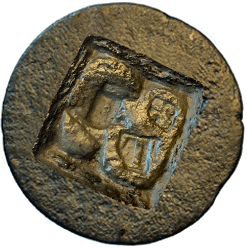Concernant les poids en fer, le Manuel des vérificateurs des poids et mesures par Ed Collin (Paris, 1875) précise que les empreintes du poinçon de vérification première et périodique, ainsi que la marque du fabricant, sont apposés sur une quantité de plomb suffisante, coulée d'un seul jet, et servant également à ajuster le poids. Ces indications sont bien visibles, ici, en retournant le poids. Sur les images de droite, on voit la marque du balancier ("L", en le retournant) et l'empreinte du poinçon à la fleur-de-lys indiquant que, comme la pile à godets, le poids en fer a été fabriqué entre 1815 et 1830. |