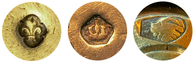 La fleur-de-lys, attestant la vérification première, a été utilisée de 1815 à 1830. Elle est remplacée par une couronne inscrite dans un pentagone jusqu'en 1847, puis par la marque du poinçon "à la bonne foi", symbolisée par une poignée de mains. |