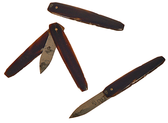 Lancette à saignée - manche (chasse) en écaille - longueur minimum 6 cm et maximum 9,5 cm - fin 19e siècle |