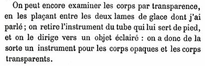 Dans son Traité Théorique et Pratique du Microscope et des Préparations, L'ÉTUDIANT MICROGRAPHE, Arthur CHEVALIER évoque cet instrument utilisé par les jeunes entomologistes : |