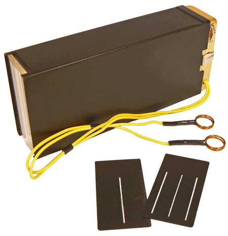 La lanterne, munie de son condenseur et de l'un de ses diaphragmes, est utilisée à côté de nombreuses pièces optiques en métal poli, verre ou plexiglas : miroirs, lentilles, demi-cylindre et prisme creux pour contenir un liquide réfringent, plaques et batonnets de verre, écrans colorés ... L'ensemble est rangé dans un coffret qui renferme également un rapporteur circulaire, un livret et des fiches d'expériences. Pour son utilisation, l'appareil doit être relié à une pile plate de 4,5 V ou, en reprenant les termes du livret, "à une pile dite de ménage, qui dure plus longtemps". |