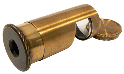 La base de l'instrument est muni d'un bouchon à vis qui libère un espace dont une face est vitrée. Cet espace est utilisé pour y placer, par exemple, un insecte vivant. A l'opposée, l'unique lentille de grande surface offre un large champ de vision et un grossissement de l'ordre de 4 fois. |