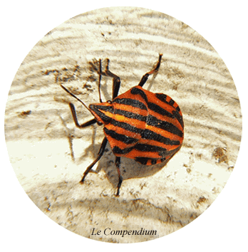 Graphosoma italicum, la "punaise arlequin" que l'on trouve sur les ombellifères est, contrairement à notre scarabée diamant, bien vivante. Elle ne vient pas de la forêt amazonienne et va retourner très rapidement sur sa plante favorite dans un jardin du Périgord ... |