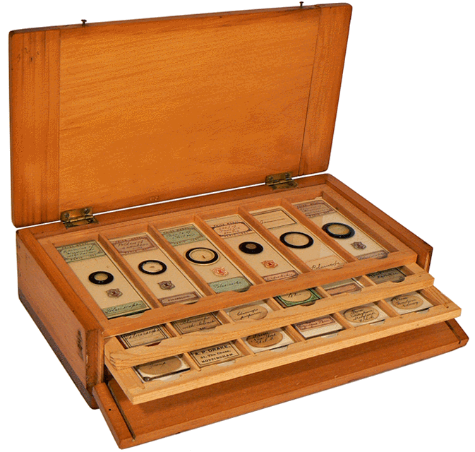 Coffret pour 36 préparations microscopiques réparties sur 6 plateaux amovibles - 21 x 11 x 5 cm - Royaume-Uni |