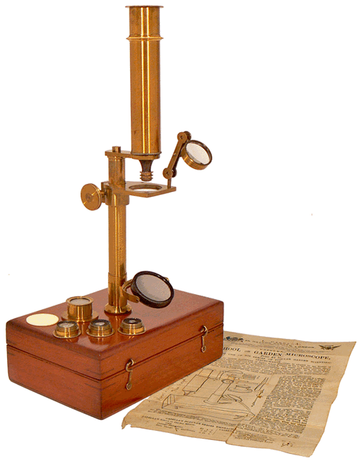 Casella's School or Garden Microscope - Hauteur minimum (en microscope composé) 29 cm - Vers 1870 |