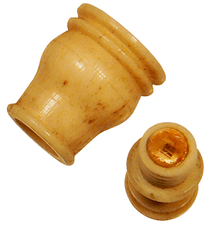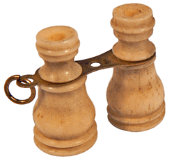 Les lentilles étaient ensuite insérées dans des supports variés, bijoux, objets religieux, porte-plume ou comme c'est ici le cas, dans ces jumelles en corne de 18 x 20 mm. |
