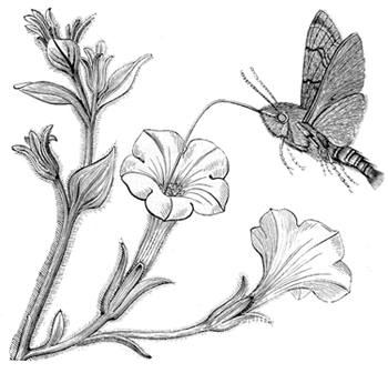 Moro-sphinx ou sphinx-moineau butinant sur un pétunia |