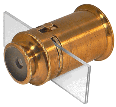 L'instrument est doté d'un doublet de Wollaston semblable à ceux qui accompagnent les meilleurs microscopes simples. Les images obtenues sont de bonne qualité. Le grossissement est de l'ordre d'une trentaine de fois. |