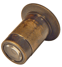 L'instrument utilise un doublet de Wollaston constitué par deux lentilles plan-convexes superposées dont les faces planes sont tournées vers l'objet. L'utilisation de deux lentilles à la place d'une seule, plus convergente, permet de corriger l'aberration de sphéricité. La première lentille a pour effet de rapprocher de l'axe les rayons qui tombent sur la seconde. En plus, un diaphragme placé entre les deux lentilles ne laisse passer que les rayons centraux pour lesquels l'aberration de sphéricité est la plus faible. |