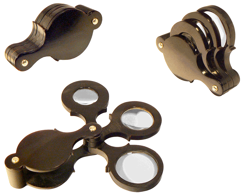 Tri-loupe à recouvrement - Longueur fermée 7,3 cm, ouverte 12,4 cm ; épaisseur 2,5 cm |