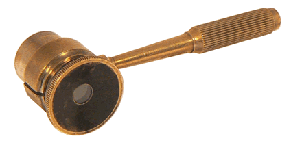 Ce doublet, qui convient pour les recherches visuelles délicates (horlogerie, pierres précieuses, etc), nous est apparu parfaitement approprié pour observer les poinçons des pièces d'argenterie. A travers ses lentilles, nous en avons photographié certains, présents sur une cuillère et une fourchette anciennes. Les empreintes ne sont pas récentes et elles présentent en surface de nombreuses