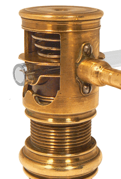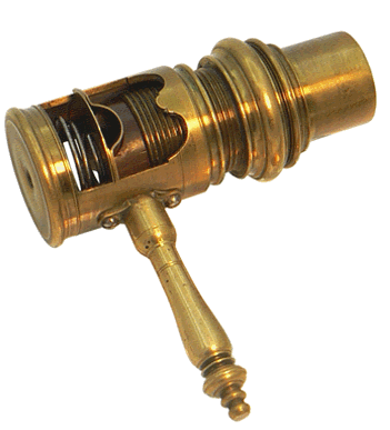 La lame coulissante ou porte-objets coulissant est un accessoire intéressant qui accompagne souvent les microscopes du XVIIIe siècle. Les objets étudiés sont momentanément confinés dans le faible espace ménagé entre, d'une part, les petits disques en verre sertis à la base des ouvertures circulaires d'une plaquette en laiton de 2 mm d'épaisseur et d'autre part, une lame en verre posée sur le dessus de la plaquette. L'ensemble étant introduit dans un cadre en laiton assurant une bonne cohésion, les petits objets, éléments de plantes ou animaux minuscules, peuvent être observés sans être écrasés ou détruits. |