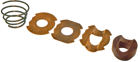 Dans le microscope, la mise en place d'une lame s'effectue entre deux glissières métalliques planes et lisses, l'introduction étant facilitée par la forme biseautée de l'extrémité de la lame. Le tube en verre est introduit par son fond arrondi et il est guidé par une troisième glissière en forme de gouttière semi-circulaire reposant sur une pièce en bois, présentant le même profil. Un ressort placé immédiatement sous l'œilleton porte-lentille exerce une pression sur les glissières et, par suite, sur la lame ou le tube qui se trouve ainsi immobilisé. Sur la photographie qui suit, les éléments évoqués, tous munis d'une fenêtre assurant le passage de la lumière, ont été extraits du corps du microscope, photographiés... puis replacés dans le bon ordre ! |