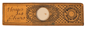 Le coffret renferme quelques lames préparées par Joseph BOURGOGNE, premier de la lignée des BOURGOGNE et souvent considéré comme un des meilleurs microscopistes du XIXe siècle. Il s'agit de préparations de 6 x 1,6 cm, entre lame et lamelle, enveloppées dans du papier coloré. Nous avons photographié trois de ces lames qui peuvent avoir plus de 150 ans ... |