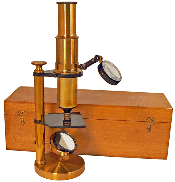 Vers 1900 et si on se réfère aux catalogue de la Maison Boucart, notre modèle de 24 cm de hauteur, grossissant 190 fois, muni de sa loupe pour éclairer les objets opaques et présenté dans une boite en acajou de 27 x 10 x 9 cm avec accessoires, c'est-à-dire une pince fine, une lame vierge et une ou deux lames préparées, était vendu 37,50 francs. Il fallait débourser 5 francs de plus pour obtenir la mise au point par pignon et crémaillère. |