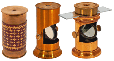 Petit microscope Stanhope. Longueur 3,5 cm et diamètre 2 cm. France - Fin du XIXe siècle |