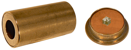 Il s'agit d'un microscope formé par une lentille de Stanhope de très petite taille. Elle est obtenue dans un prisme à section carrée de 6 mm de longueur et dont le côté n'atteint pas 3 mm. |