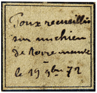 Sur la préparation dont le sujet est photographié ci-contre, une première étiquette porte le nom "pou de pigeon" et sa date de réalisation, le 21 septembre 1882. Une deuxième étiquette précise qu'il s'agit d'un Colpocéphale à longue queue, appartenant à l'ordre des épizoïques (il s'agit bien des poux), de la classe des Insectes. |