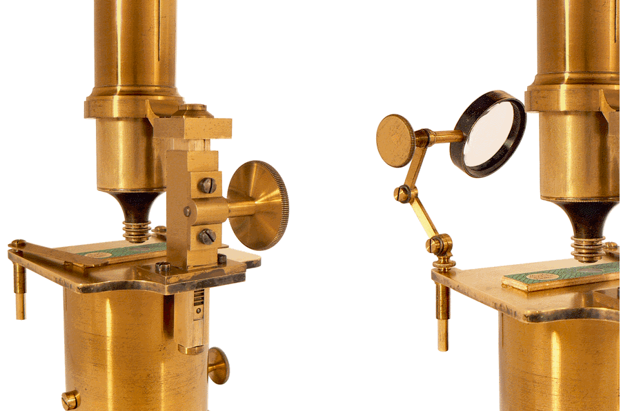 Sur son site "antique-microscopes.com", Allan Wissner, présente un spécimen très proche ayant appartenu à Georges Tate, naturaliste écossais, (1805-1871). |