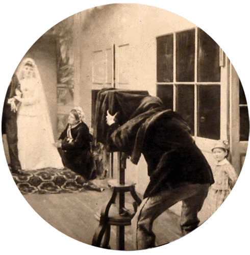 On peut imaginer que, sous son voile noir, le photographe peint par Dagnan, utilise aussi une loupe, probablement différente de la nôtre, pour parfaire la mise au point de l'image de la mariée sur la plaque en verre dépoli placée à l'arrière de sa chambre noire. |