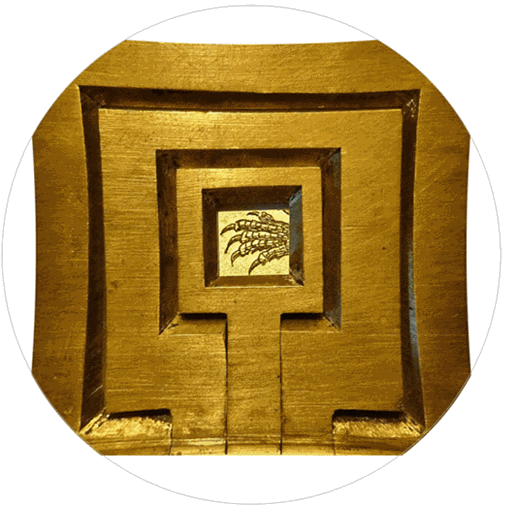 L'image précédente peut être comparée à celle obtenue avec notre grand compte-fils à 3 ouvertures. Si l'image centrale de la patte du petit quadrupède ovipare est parfaite, la distorsion en coussinet est importante et bien visible sur la fenêtre externe du compte-fils... |