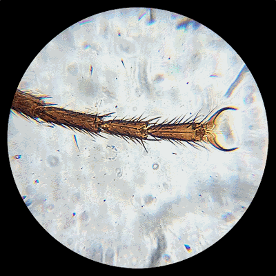 La base vissée peut être retournée et les pieds repliés pour tenir moins de place dans le coffret qui devait probablement protéger le microscope. |