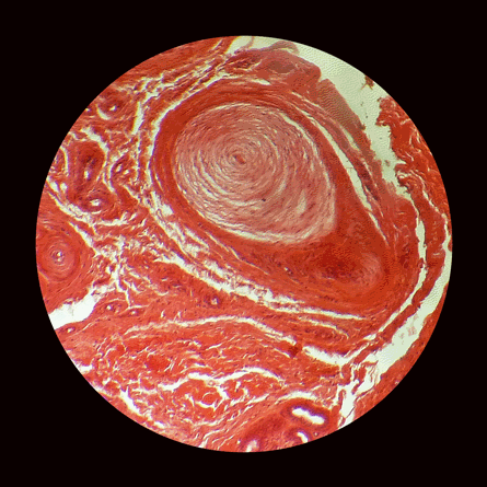 Ces images, qui correspondent à des zones différentes d'une même coupe histologique de doigt, montrent la complexité de la structure des tissus biologiques... |