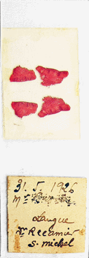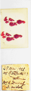 Certaines lames de cette collection portent le nom du Dr Pauchet et datent de sa période d'activité à l'Hôpital Saint Michel. Il s'agit vraisemblablement de lames réalisées à partir de prélèvements effectués sur ses patients. |