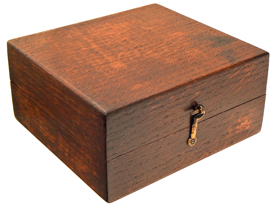 Le coffret, qui fermé mesure 19 x 18 x 9 cm, reçoit 80 lames de dimensions classiques. Chaque série de 20 lames est maintenue en place par une languette en bois dont les extrémités s'encastrent dans les côtés du coffret. |